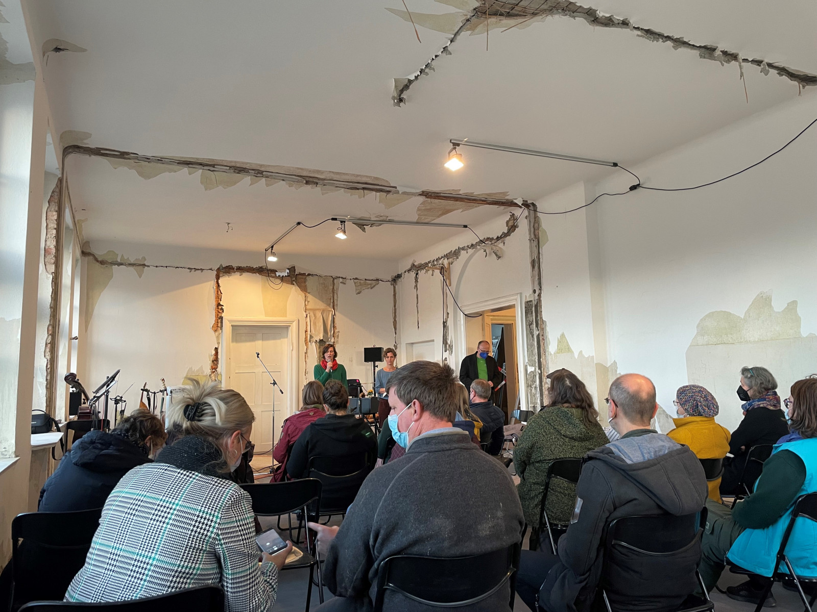 Zur Vernissage am 06.11.2021 kamen mehr als 70 Gäste in die historische Villa Heinrichwerk und diskutierten zum Thema Rechtsextremismus.